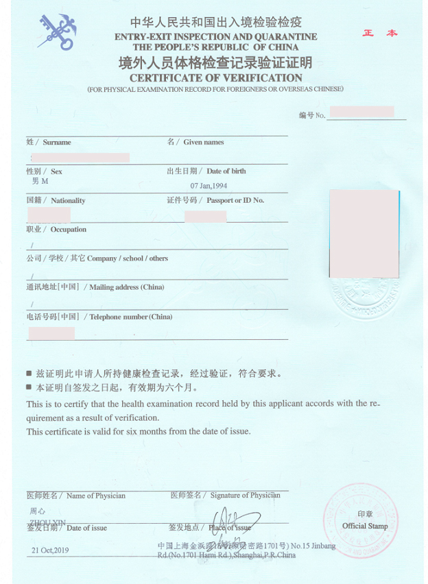 外国人来中国需要做体检在“”国际旅行卫生保健中心“”每个市有的。